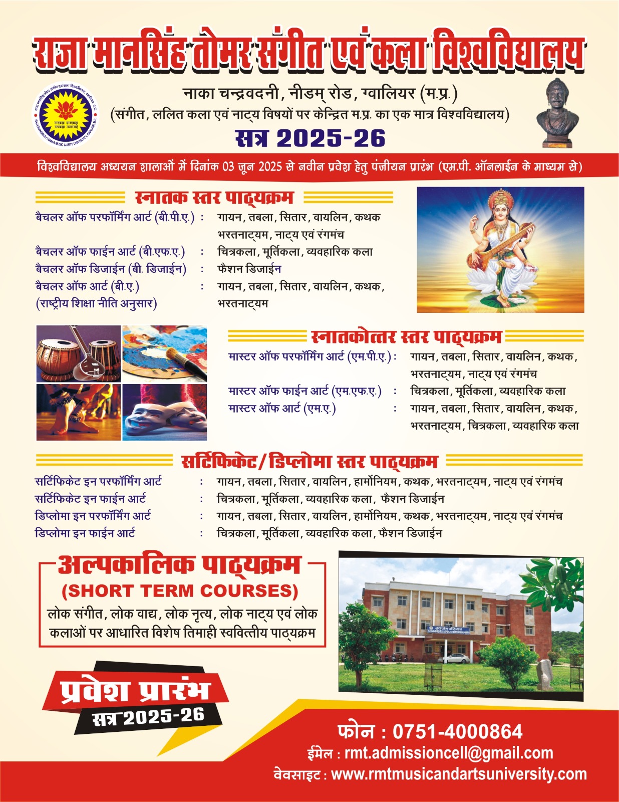 Warm greetings from Raja Mansingh Tomar Music & Arts University, Gwalior.