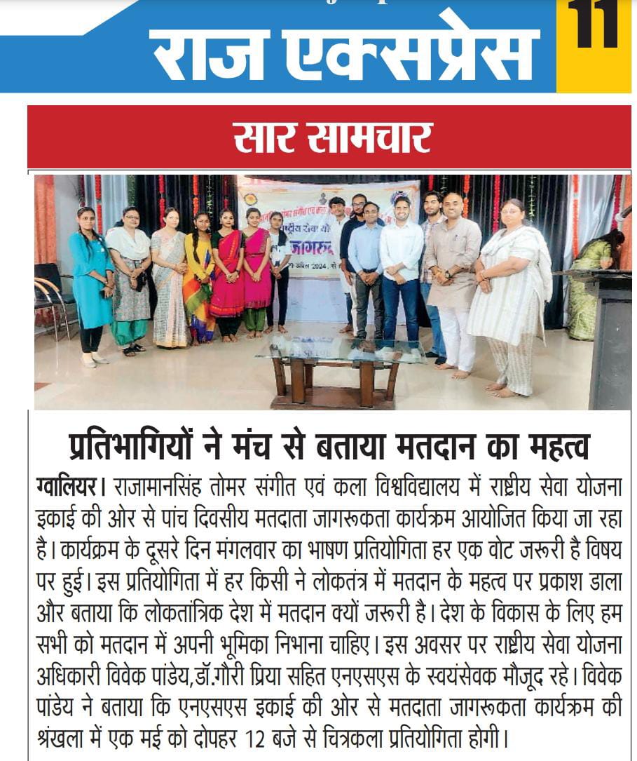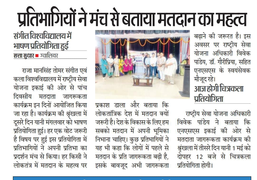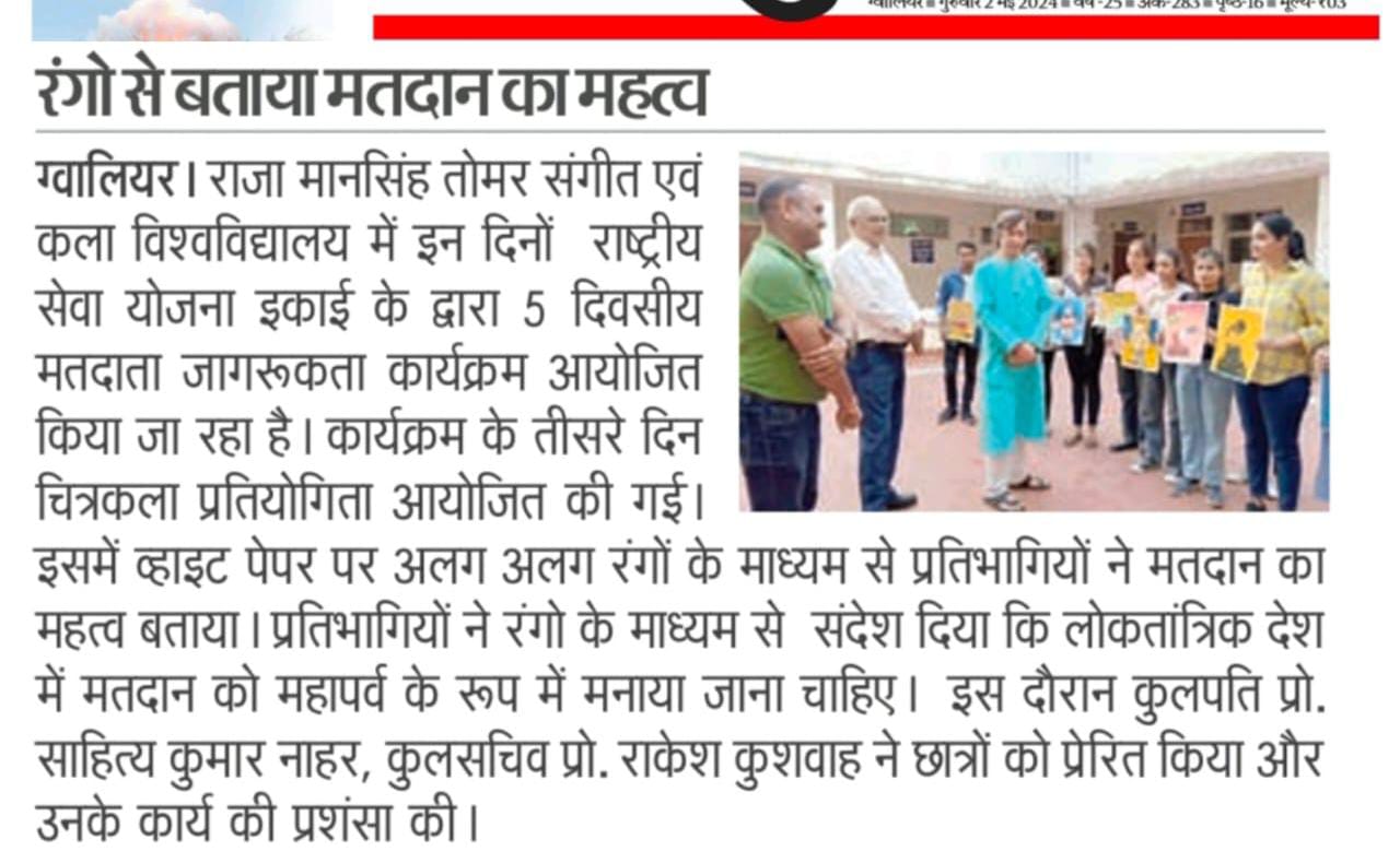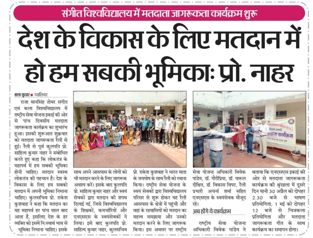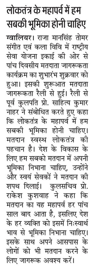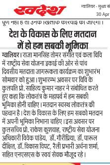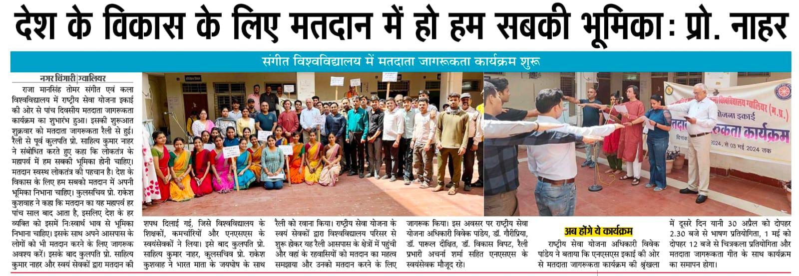 मतदाता जागरूकता कार्यक्रम 29 अप्रैल 2024 से 03 मई 2024